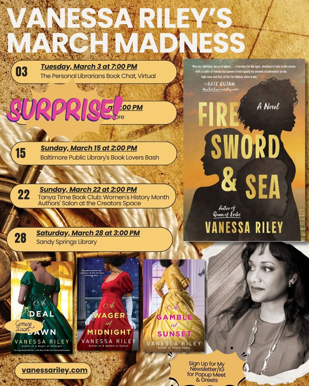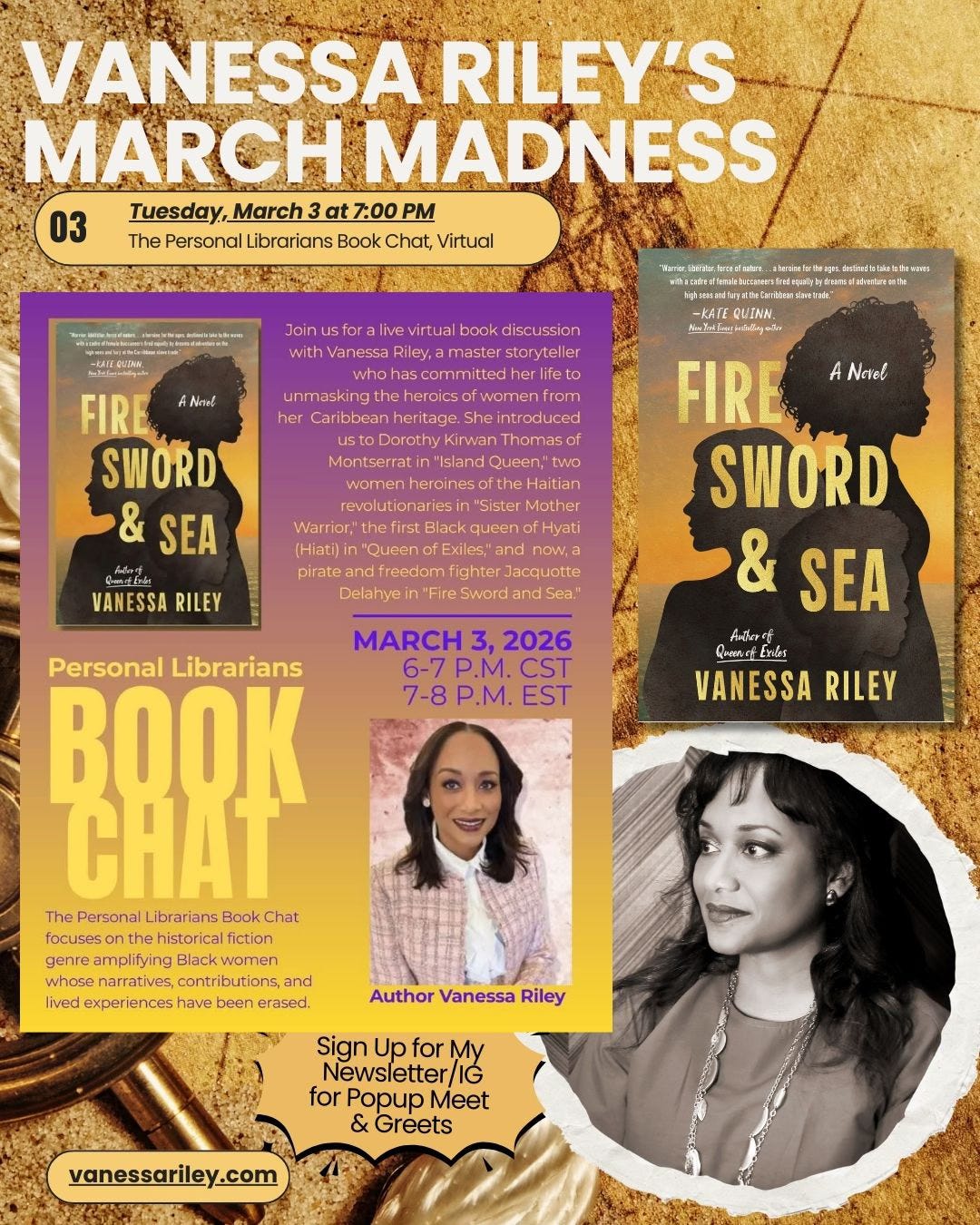 Fire Sword and Sea — Vanessa Riley: A sweeping historical novel that exposes pirates, sisterhood, and survival in the chaotic and diverse 17th-century (1600s) Caribbean.