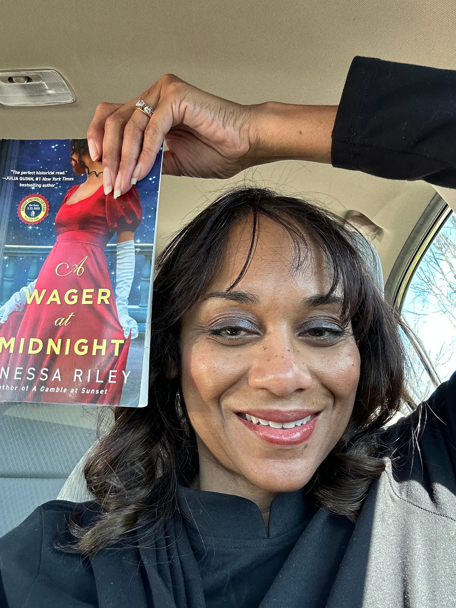 Find Ways to Retain Joy - Vanessa with her 26th book taking Car Selfies.